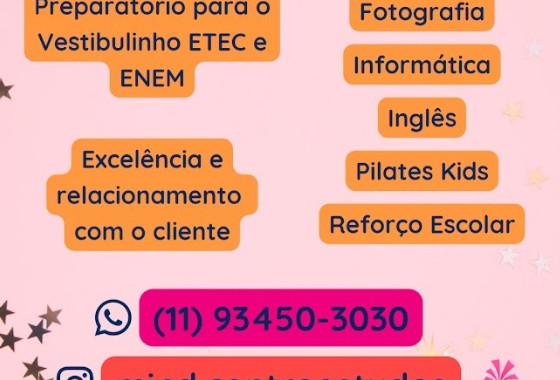 A Mind – Centro de Estudos celebra no mês de março o seu primeiro aniversário. A escola foi inaugurada em 2022 com o objetivo de ser referência de ensino em Salesópolis. A instituição conta com diversos cursos em diversas áreas. “Nós estamos muito felizes com o nosso primeiro aniversário. Durante esse período, prezamos pela qualidade no ensino e a nossa maior gratificação foi ver nossos alunos formados”, disse o coordenador pedagógico, Anderson Nepomuceno. Hoje, a escola oferece os seguintes cursos: